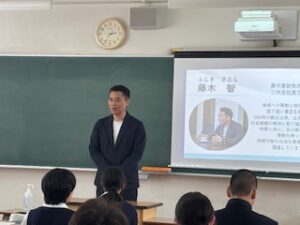 藤木建設株式会社代表取締役が地元高校に企業説明会に行ってまいりました。